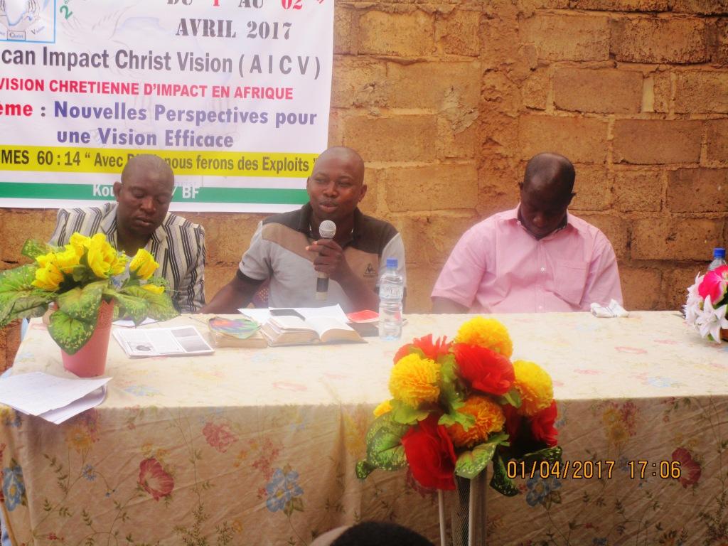L’association African Impact Christ Vision (AICV) ou la Vision Chrétienne d’Impact en Afrique a tenu sa 2e édition de la conférence annuelle du 1er au 2 avril 2017 sous le thème: « Nouvelles perspectives pour une vision efficace dans l’évangélisation et la solidarité. » Cette conférence avait pour orateurs pasteur Alassane Bambara et Mathieu Tagnabou.