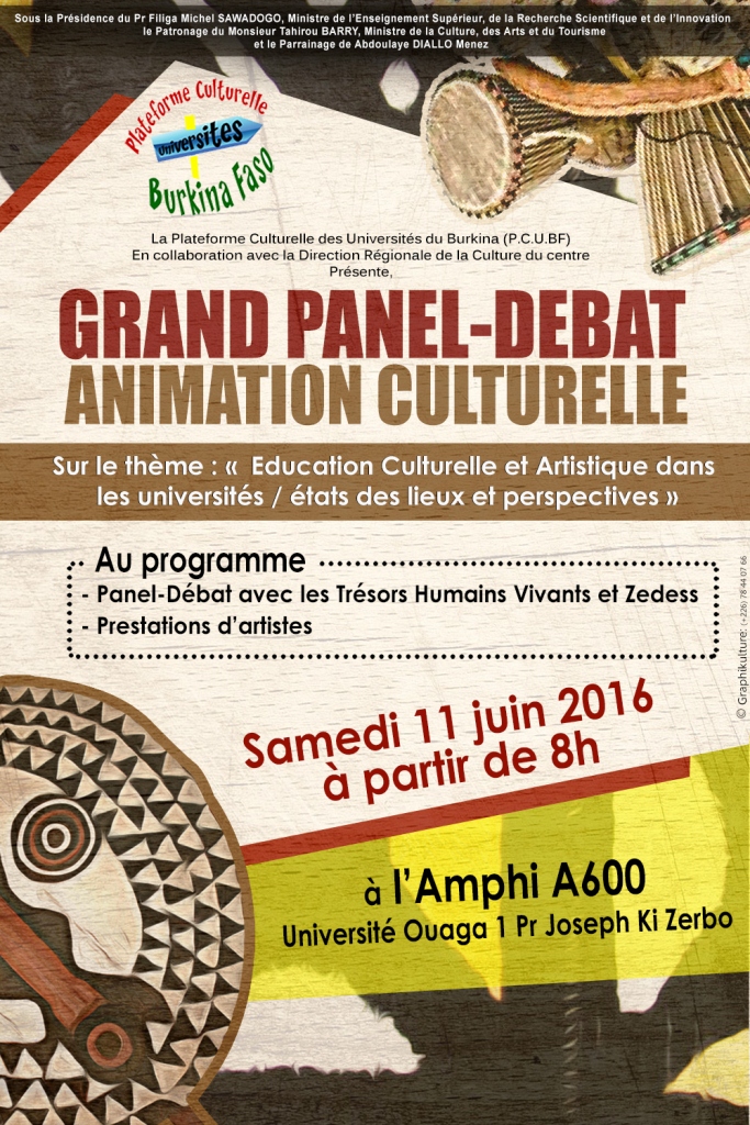 Grand panel-débat/ Animation culturelle le samedi 11 juin 2016 a l’amphi A600 de l’université Ouaga I Pr Joseph KI ZERBO