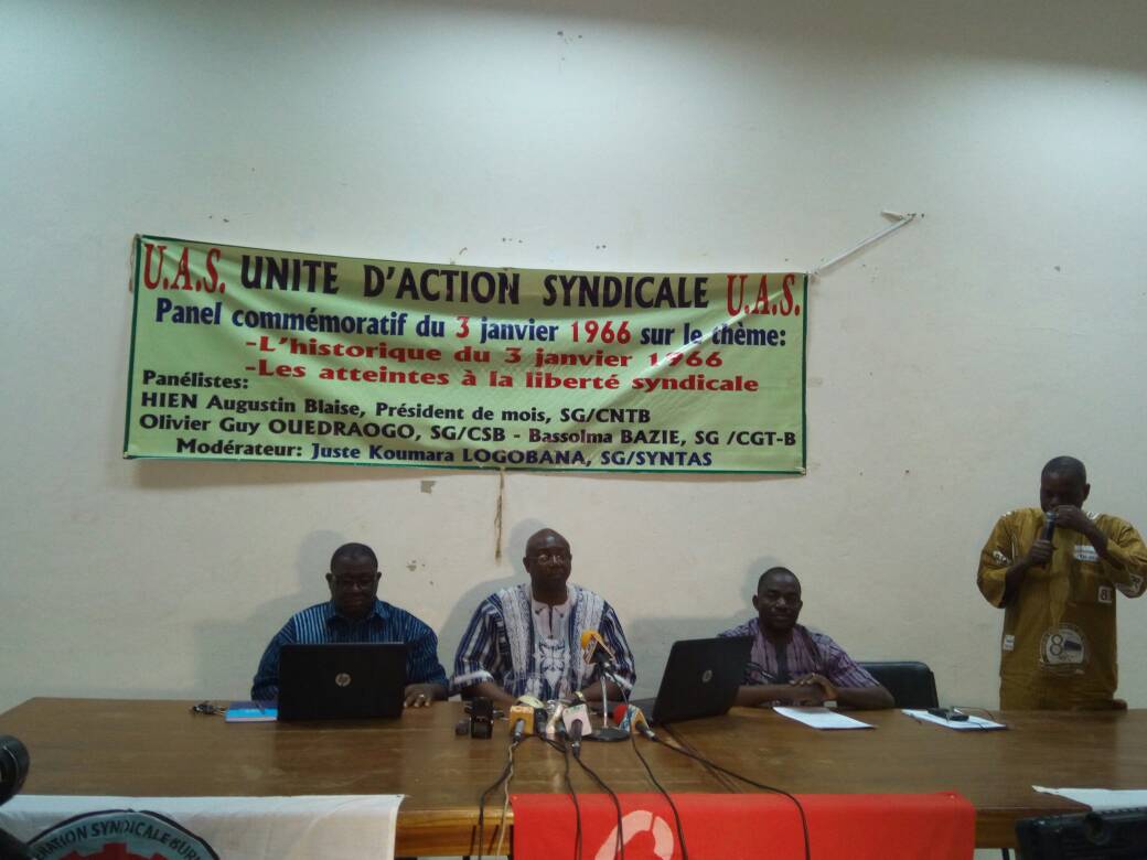 3 Janvier 1966-3 Janvier 2018, cela fait 52 ans qu’un soulèvement populaire conduisait à la chute du régime de Maurice Yaméogo. Les centrales syndicales ont été au premier rang de ce mouvement qui traduisait les aspirations du peuple a plus de liberté politique, syndicale et d’opinion. En ce jour anniversaire, l’Union d’action syndicale a organisé un panel à la bourse du travail sur l’historique du 3 janvier 1966.