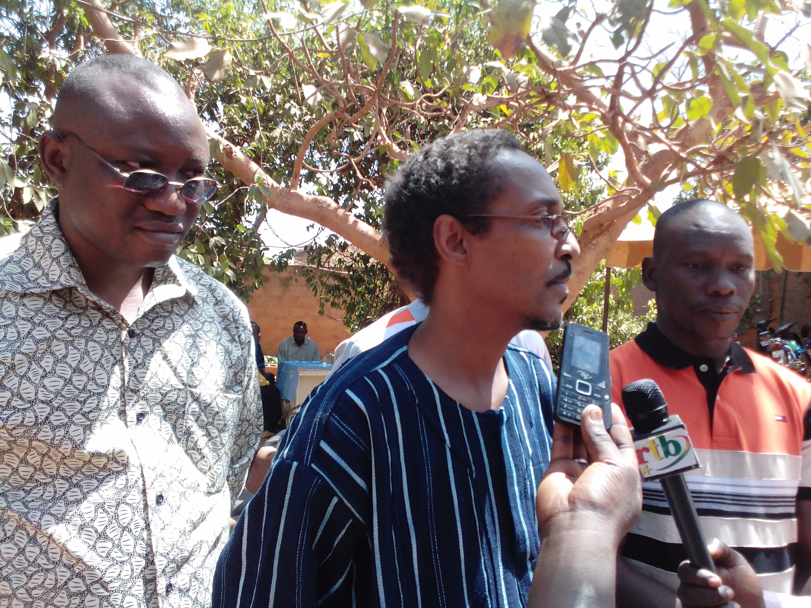 coupure de rubans par les parrains Joël en tenue traditionnelle, le président de L’ASER, le représentant du co-parrain