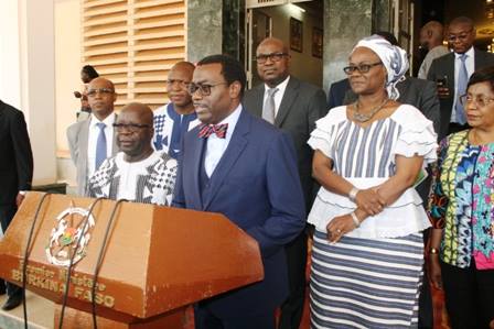 Par ailleurs, il a salué l’engagement du président du Faso, Son Excellence Roch Marc Christian KABORE. «Le taux de croissance au Burkina Faso est très impressionnant, 5,9% depuis l’an passé. La prévision, c’est qu’il peut atteindre 7,4% l’an prochain. Cette tendance est extrêmement très importante, malgré toutes les difficultés liées aux attaques terroristes et à la baisse des matières premières. Le Burkina Faso reste aujourd’hui parmi les pays dont le taux de croissance est le plus élevé en Afrique, et parmi les dix pays les plus importants», a souligné le président de la BAD. En effet, les relations entre le Burkina Faso et la BAD remontent en 1970 et depuis cette date le pays bénéficie du soutien de cette institution. Selon Dr ADESINA, depuis cette période à aujourd’hui, la BAD a fait un investissement d’1,8 milliards de dollars américains.