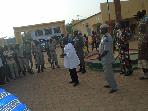 Le ministre d’Etat, ministre Simon Compaoré (en blanc) s’adressant aux policiers à la direction régionale de la police nationale