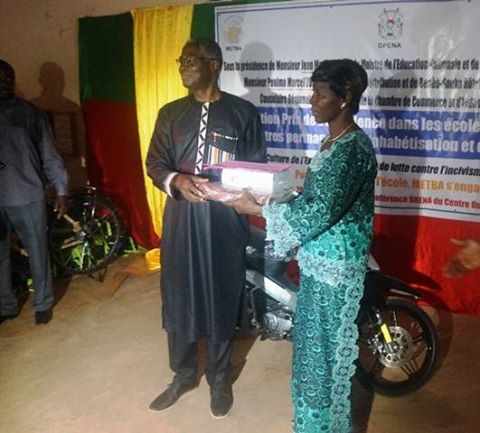 La meilleure enseignante est repartie entre autres avec une moto neuve remise par le ministre Jean Martin COULIBALY, de fournitures pour enseignants, etc.