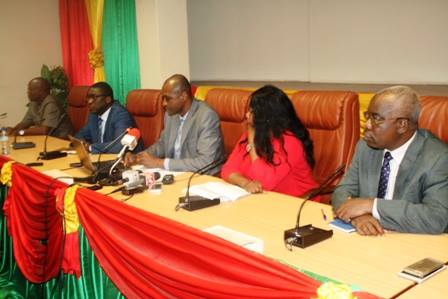 Le secrétaire général du ministère de l’Economie, des Finances et du Développement, Dr Seglaro Abel SOME, en compagnie de la Directrice de cabinet, du Directeur général du Trésor et de la comptabilité publique, du Directeur général des Impôts et du Directeur des ressources dudit ministère, a animé une conférence de presse, le jeudi 20 juillet 2017, à la Direction générale de la Coopération. Il s’est agi de donner aux journalistes des informations précises sur les raisons du mouvement lancé le lundi 17 juillet 2017 par le Syndicat autonome des agents du Trésor et de la comptabilité publique (SATB) et le Syndicat national des agents des impôts et des domaines(SNAID).