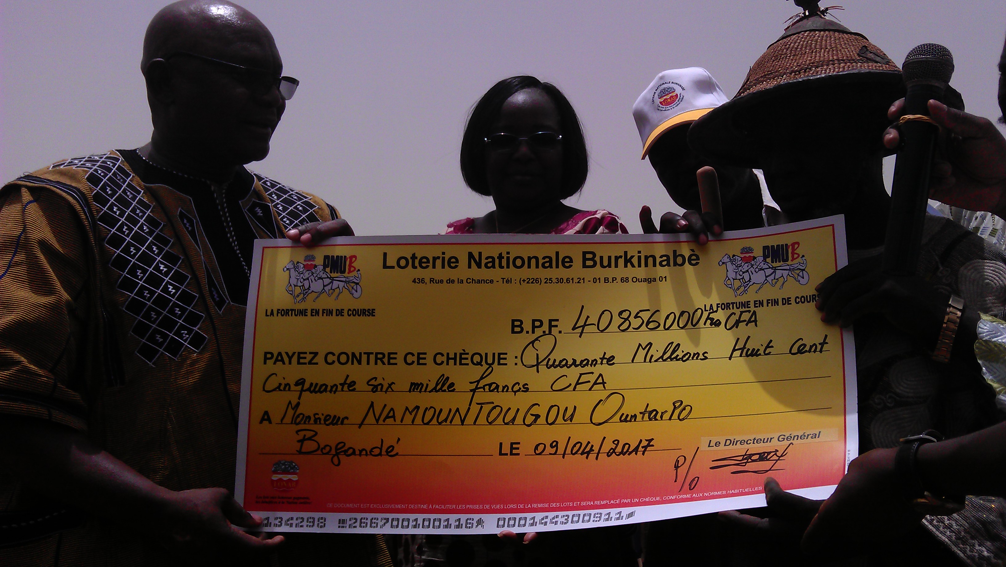 Fidèle à son slogan les lots aux heureux gagnants, les bénéfices à la nation entière, la nationale des jeux  du hasard a enregistré deux    gagnants dans la Gnagna. Ountarpo NAMOUNTOUGOU et Amidou MANO empochent respectivement 40 856 000 et 3 000 000 de francs CFA. La remise desdits lots est intervenue ce 09 avril à Bogandé en présence des autorités, parents et amis. Une cérémonie présidée par le haut-commissaire de la province et le directeur régional de LONAB de l’Est.
