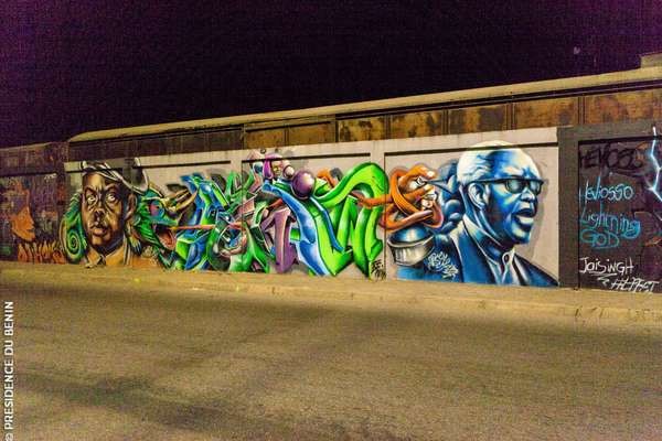 À Cotonou, au Bénin, le « mur du patrimoine », un mur couvert de graffitis, est l’objet d’attraction du moment dans la ville de Cotonou. C’est un musée à ciel ouvert de près d’un kilomètre. Ce travail qui participe à la transformation du visage de Cotonou, la capitale économique du Bénin, est le fruit du festival EFFET GRAFF, grand festival d’art urbain d’Afrique francophone, initié par le béninois Laurenson DJIHOUESSI en 2013, sous l’égide de l’Association ASSART.